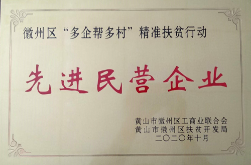 2020年10月13日,區(qū)工商聯(lián)、區(qū)扶貧開發(fā)局聯(lián)合在呈坎鎮(zhèn)容溪碼頭農(nóng)產(chǎn)品展銷會上舉行“多企幫多村”精準扶貧行動先進民營企業(yè)表彰大會。包括我公司在內(nèi),徽州區(qū)共有20家企業(yè)獲此殊榮。