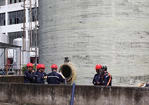 演練分兩個部分進行:第一部分是“有限空間安全作業(yè)的規(guī)范流程”演練。第二部分是“有限空間安全作業(yè)突發(fā)安全事故的應(yīng)急救援演練”。